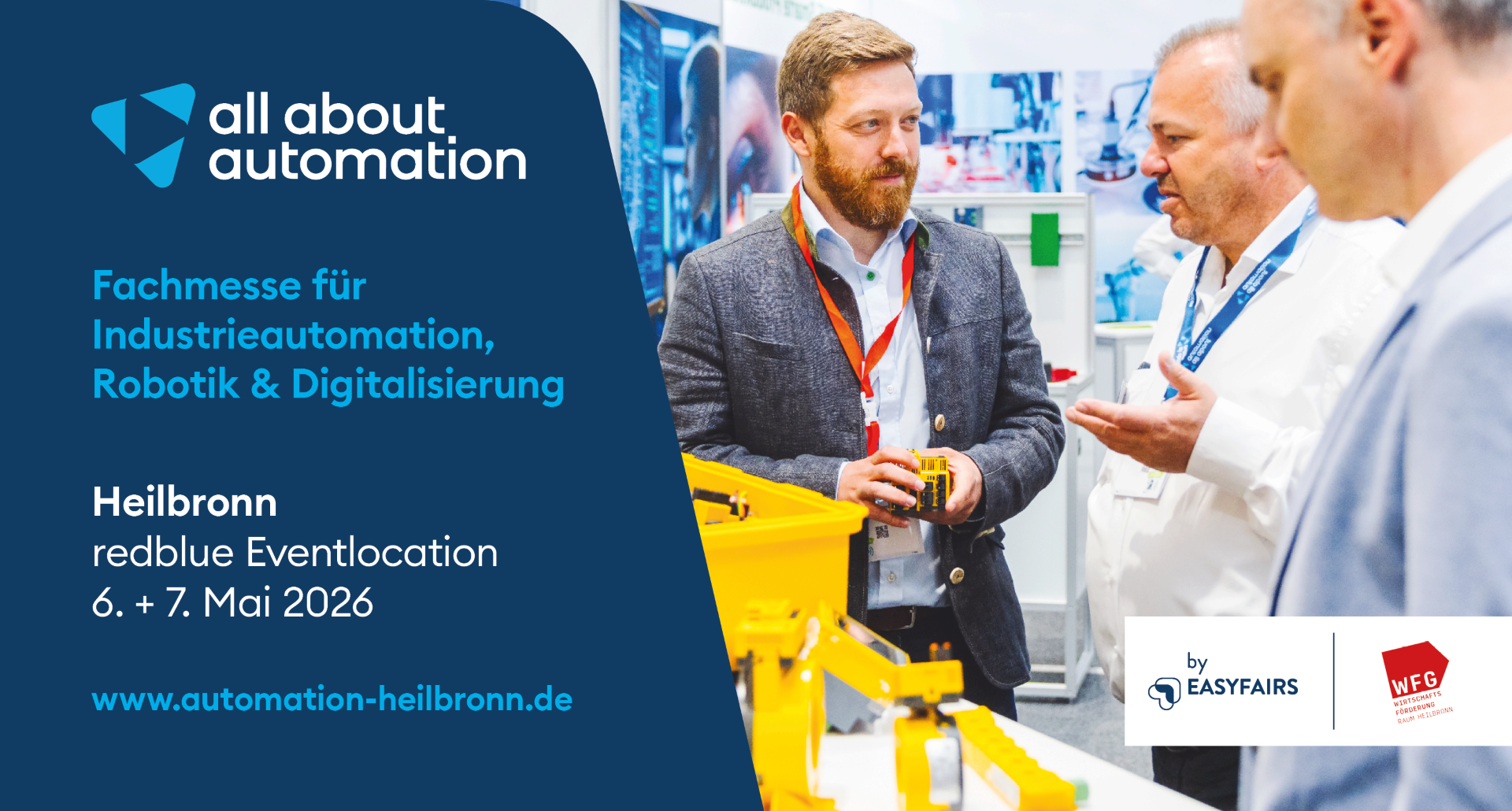 Im Zuge dessen bieten wir Unternehmen aus dem Wirtschaftsraum Heilbronn und im Einzelfall auch darüber hinaus die Möglichkeit, sich mit ihren Produkten und Dienstleistungen auf einem Gemeinschaftsstand auf wichtigen nationalen Fachmessen zu präsentieren.